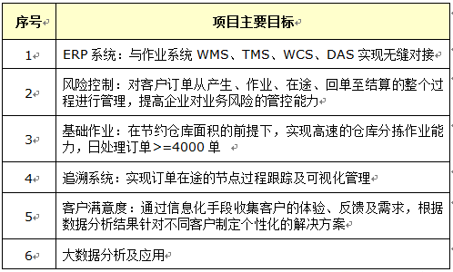 本項目的主要目標是通過廣東益邦物流有限公司先進的信息化理念、系統(tǒng)流程以及在大健康產(chǎn)業(yè)領(lǐng)域卓越的供應(yīng)鏈解決方案能力和經(jīng)驗,立足于衛(wèi)康當前的業(yè)務(wù)模式及未來業(yè)務(wù)戰(zhàn)略規(guī)劃,用專業(yè)的管理和信息技術(shù)將衛(wèi)康的配送中心打造成國內(nèi)先進的物流配送中心,通過規(guī)范、標準化的運營,不斷提升衛(wèi)康的物流管理水平及終端客戶的滿意程度。