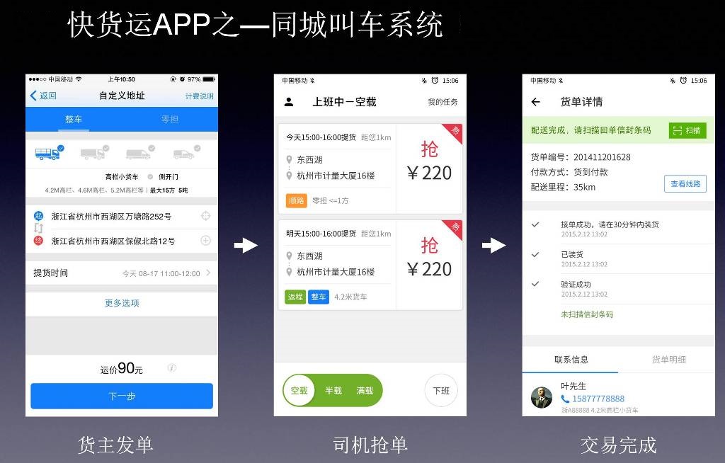 而這些長期存在的問題,恰恰是互聯網+技術最擅長解決的問題。針對貨運行業同城配送環節存在的難題,快貨運研發了推出了同城智能配送管理系統,應用“貨運眾包,運能共享”新理念,借助移動互聯網和大數據技術解決貨運難題。
