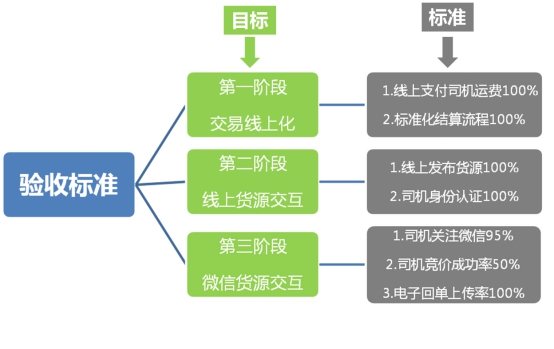 招商局物流制定了各經營單位2016年度運力模式新平臺應用推廣KPI指標,包括上線營業收入、上線項目毛利率、上線達成時間及累計的車輛資源池數量,相應的標準如下