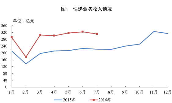 7月份,全行業業務收入完成411.8億元,同比增長29.7%;業務總量完成584.9億元,同比增長46.7%。