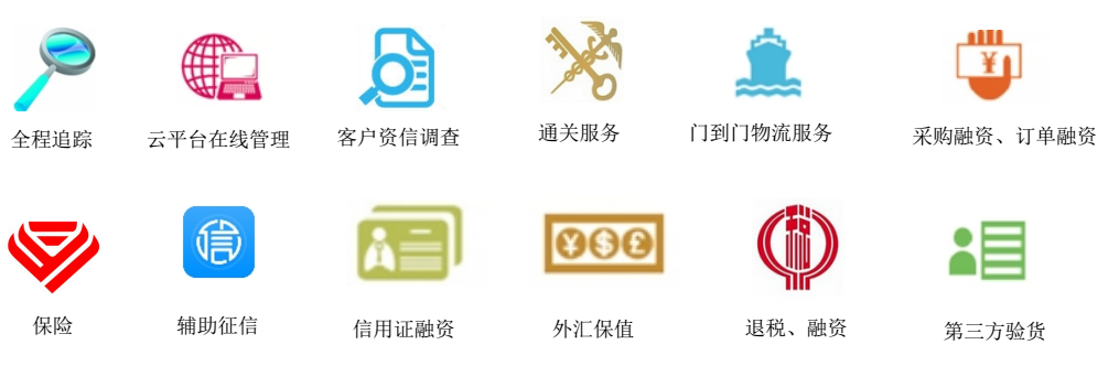 物流、資金流、商流、信息流全程貫通,大數據分析助力中小微外貿企業信用體系的建立,聯合中信保服務,降低客戶外貿風險。