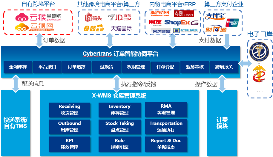 在這種情況下,云猴電商事業(yè)部邀約幾家供應(yīng)商,進(jìn)行流程設(shè)計(jì)和提案,再由技術(shù)部進(jìn)行嚴(yán)格的考評。由于通天曉解決方案無論是在系統(tǒng)自身性能、靈活度、穩(wěn)定性以及使用的便捷性方面,都極度符合云猴跨境業(yè)務(wù)的要求。并且通天曉在跨境方面有著豐富的行業(yè)經(jīng)驗(yàn),韻達(dá)海外倉、小笨鳥跨境平臺、國藥跨境等都選擇了通天曉解決方案。2015年6月,通天曉不負(fù)眾望,與步步高集團(tuán)電子商務(wù)版塊云猴網(wǎng)成功簽約,為其跨境業(yè)務(wù)(云猴全球購)及第三方倉儲服務(wù)部署OMS及WMS系統(tǒng),提供訂單協(xié)同、海關(guān)審核、精細(xì)化倉庫運(yùn)營等一體化跨境供應(yīng)鏈軟件解決方案,通過訂單管理系統(tǒng)和倉庫管理系統(tǒng)協(xié)同作業(yè),與海關(guān)和國檢系統(tǒng)銜接,以快速響應(yīng)云猴客戶的訂單。