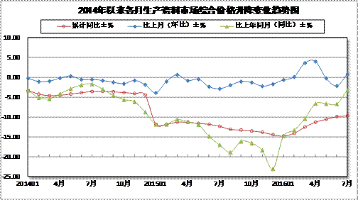 在此背景下,7月份生產資料市場平均價格環比小幅回升0.84%,同比下降3.2 %;1-7月份,累計平均價格同比下降9.64%,比年初上漲4.52%。從監測的大類品種來看,黑色金屬、有色金屬、化工產品和建材產品價格均有不同程度上漲,其中黑色金屬和有色金屬漲幅較為明顯,化工產品止跌小幅回升,建材產品延續4月份以來微幅上漲的走勢。其他五大類產品環比有所下降。其中,成品油降幅最為顯著,超過2個百分點。原煤、木材和汽車價格轉升為降,機電產品價格繼續小幅下跌。