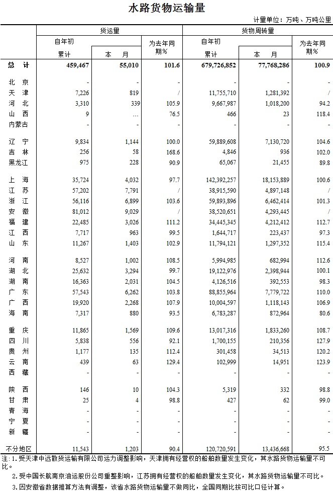 2016年9月水路貨物運輸量