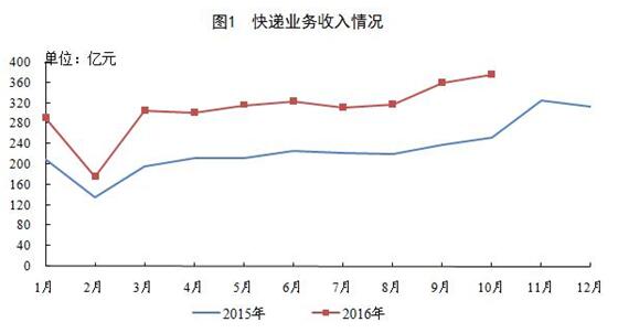 1-10月份,郵政行業業務收入(不包括郵政儲蓄銀行直接營業收入)累計完成4266.4億元,同比增長33.2%;業務總量累計完成5768.1億元,同比增長47.5%。
