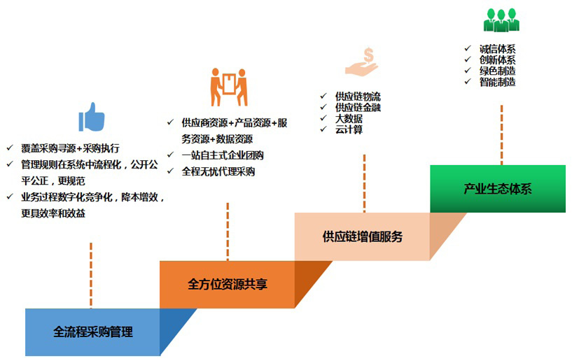 歐冶采購基于海量優質供應商的資源及管理能力、對大型制造企業采購供應全流程的理解和服務能力,提供一站式的電子采購交易市場,覆蓋從采購需求計劃管理、到采購尋源交易管理、到采購合同執行管理的企業采購全生命周期,能夠滿足多采購組織多采購品種的個性化采購管理需求,并提供供應鏈金融、物流、采購咨詢等配套支持,用規范、透明的流程和有效的在線管理手段管控廉政風險,強有力地保障了傳統制造企業向“互聯網+采購”轉型的順暢和成功。