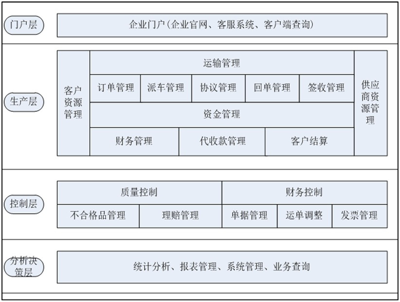 供應鏈平臺主體分為采購、生產、銷售、逆向物流四部分,為了實現其信息化的應用,我們在此基礎上開發了TMS系統和WMS系統兩大核心產品分別用于物流運輸管理功能與物流倉儲管理功能。
