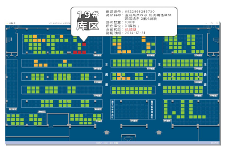 對于已經錄入系統的食品類、酒類、恒溫類、日用品類等商品,配送中心庫區采用分類別、分樓層管理,絕不混倉。按照日期分批次管理,系統中設A/B/C倉管理,并分別用A區綠色、B區黃色、C區紅色進行可視化管理。A區安全正常,B區臨近效期,C區臨近效期并有缺陷但還可以使用。產品嚴格按照A/B/C倉界定的要求入庫,系統直接默認A倉出庫并已匹配對應的產品檢驗檢疫報告。好處在于操作人員不必在大量的庫存數據中挑選符合食品安全要求的產品,同時配送中心揀貨人員只需按照供貨憑證上的信息(商品名稱、規格、條碼、數量、生產批次日期、倉位等)進行揀貨,通過食品可追溯系統手持終端掃碼出庫,確保單證、貨物、系統管控追蹤信息相符并具有可追溯性。