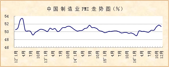 中國物流與采購聯(lián)合會、國家統(tǒng)計(jì)局服務(wù)業(yè)調(diào)查中心發(fā)布的2016年12月份中國制造業(yè)采購經(jīng)理指數(shù)(PMI)為51.4%,較上月回落0.3個百分點(diǎn)。指數(shù)回落主要受年底企業(yè)生產(chǎn)活動有所回落影響,但需求端基本保持平穩(wěn),經(jīng)濟(jì)整體趨穩(wěn)向好基本態(tài)勢沒有改變。從2016年全年來看,PMI指數(shù)穩(wěn)步小幅回升,顯示經(jīng)濟(jì)運(yùn)行中的積極因素增多,企穩(wěn)態(tài)勢逐漸鞏固,向好發(fā)展態(tài)勢更為明顯,預(yù)計(jì)全年經(jīng)濟(jì)增長6.7%左右,年初預(yù)定目標(biāo)基本實(shí)現(xiàn)。