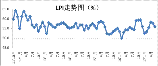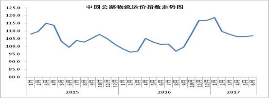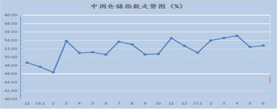 中國物流與采購聯合會發布的2017年6月份中國物流業景氣指數為55.8%較上月回落1.9個百分點;中國倉儲指數為52.7%,較上月回升0.3個百分點;中國公路物流運價指數為107.0點,比上月回升0.69%;中國電商物流運行指數同比指數為123.2點,比上月回升2.1點。
