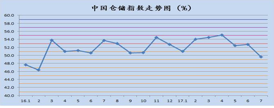 中國物流與采購聯合會發布的2017年7月份中國物流業景氣指數為53.8%較上月回落2個百分點;中國倉儲指數為49.6%,較上月回落3.1個百分點;中國公路物流運價指數為105.1點,比上月回落1.8%;中國電商物流運行指數同比指數為119.8點,比上月回落3.4點。