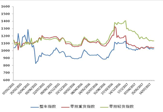 本周(2017年7月31日~8月4日),由中國物流與采購聯(lián)合會(huì)和林安物流集團(tuán)聯(lián)合調(diào)查的中國公路物流運(yùn)價(jià)指數(shù)1049.91點(diǎn),環(huán)比回升0.13%。