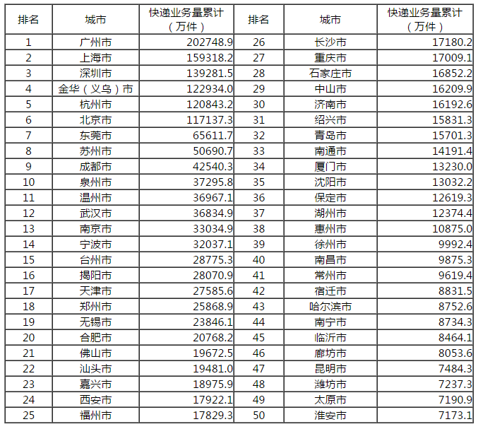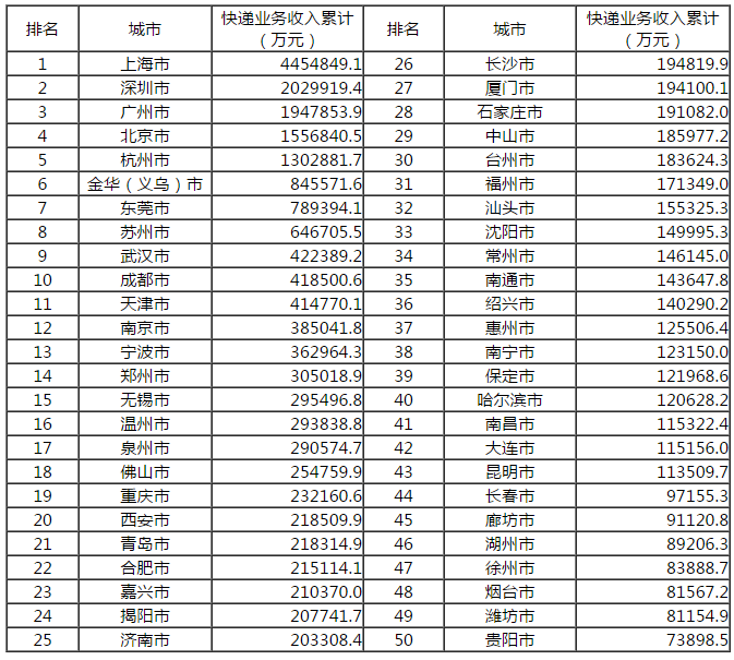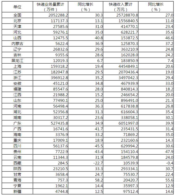 分省快遞服務企業(yè)業(yè)務量和業(yè)務收入情況表
