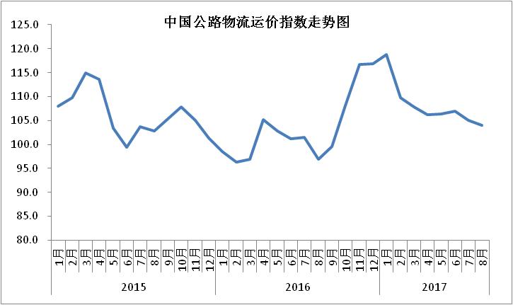 中國物流與采購聯(lián)合會(huì)發(fā)布的2017年8月份中國物流業(yè)景氣指數(shù)為53.5%較上月回落0.3個(gè)百分點(diǎn);中國倉儲(chǔ)指數(shù)為51.6%,較上月回升2個(gè)百分點(diǎn);中國公路物流運(yùn)價(jià)指數(shù)為104點(diǎn),比上月回落1%;中國電商物流運(yùn)行指數(shù)同比指數(shù)為120.4點(diǎn),比上月回升0.6點(diǎn)。