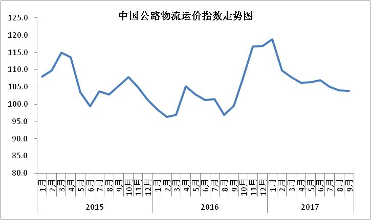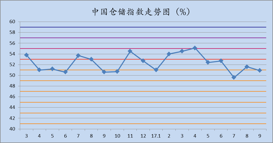中國(guó)物流與采購(gòu)聯(lián)合會(huì)發(fā)布的2017年9月份中國(guó)物流業(yè)景氣指數(shù)為54.3%較上月回升0.8個(gè)百分點(diǎn);中國(guó)倉(cāng)儲(chǔ)指數(shù)為50.9%,較上月回落0.7個(gè)百分點(diǎn);中國(guó)公路物流運(yùn)價(jià)指數(shù)為103.9點(diǎn),比上月回落0.1%;中國(guó)電商物流運(yùn)行指數(shù)同比指數(shù)為123.6點(diǎn),比上月回升3.2點(diǎn)。