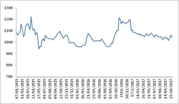 本周(2017年11月6日~11月10日),由中國物流與采購聯合會和林安物流集團聯合調查的中國公路物流運價指數1043.96點,運價指數止跌回暖,比上周回升2.0%。