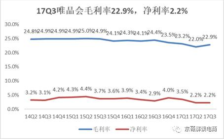本季度,唯品會毛利率22.9%,同比下降1.5個百分比,但環比來看已經進入回升階段。凈利率2.2%,同比小幅下跌0.7個百分比,環比則持平,止住了連續兩個季度的跌勢。