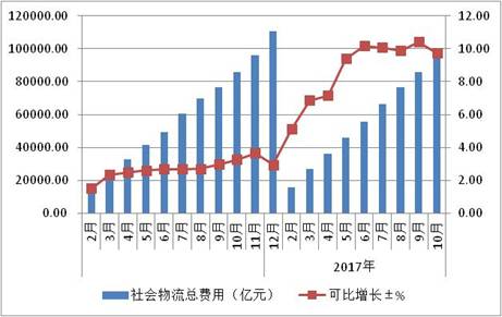 1-10月,社會物流總費用9.5萬億元,同比增長9.7%,增速比前三季度回落0.7個百分點。