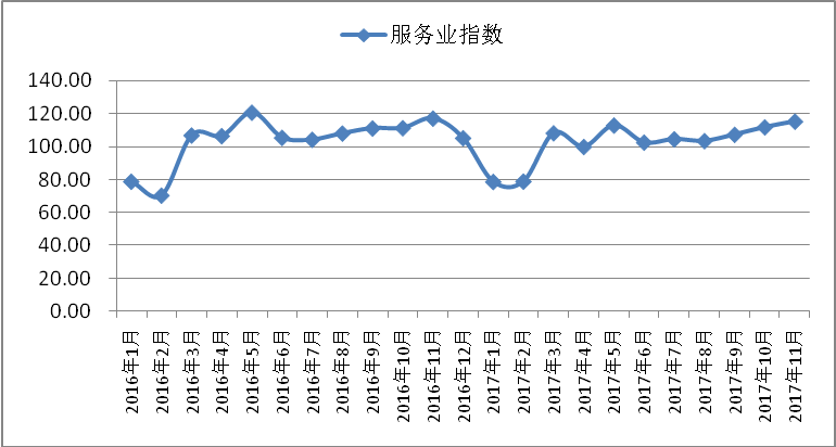 服務業整體運行良好。14個服務業大類中,11個服務業商務快件指數高于100%。其中交通運輸倉儲郵政業、批發零售業、住宿餐飲業、租賃服務業商務快件指數分別達到127.2%、120.2%、122.0%和115.3%,盡管環比有所回落,但依然保持較高水平。受房地產政策影響,房地產業和建筑業商務快件指數回落明顯,11月份分別為102.6%和99.4%,分別比上月回落4.9個百分點和8.3個百分點。