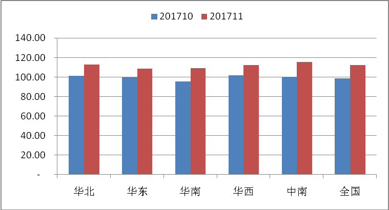 從業人員需求增加明顯。隨著業務旺季的到來,快遞從業人員規模迅速增長,11月份人員指數為112.1%,比上月回升13.4個百分點。其中,華南、中南地區回升分別達到13.4個百分點和15.1個百分點,華北和華西回升也在10個百分點以上。