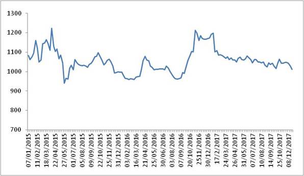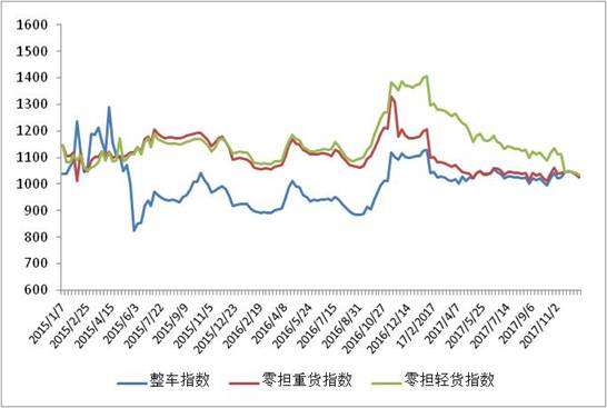 本周(2017年12月25日~12月29日),由中國物流與采購聯合會和林安物流集團聯合調查的中國公路物流運價指數1012.35點,環比回落1.63%。