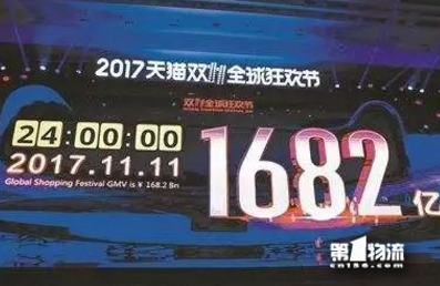 2017年天貓“雙11”再破記錄,GMV突破1682億元,物流訂單突破8.12億件。