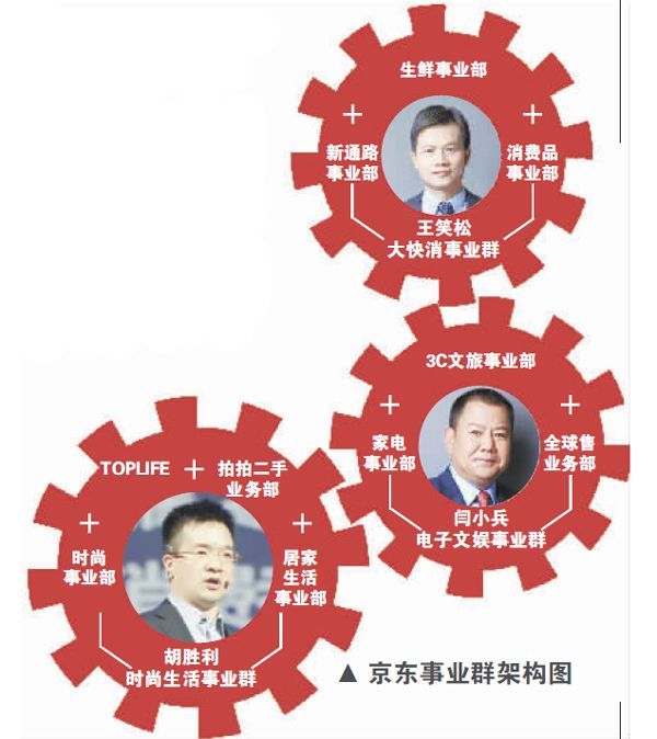 創新業務的不斷涌現促使京東對內部架構進行了新一輪調整。1月11日,京東集團董事局主席兼首席執行官劉強東發出內部郵件,宣布京東商城將組建大快消、電子文娛和時尚生活三大事業群。有分析認為,將“星羅棋布”的事業部悉數整合進三大事業群,既是京東適應外部環境變化,提升競爭實力的舉措,也是企業面對快速擴充的業務,通過內部整合提升運營效率的表現。