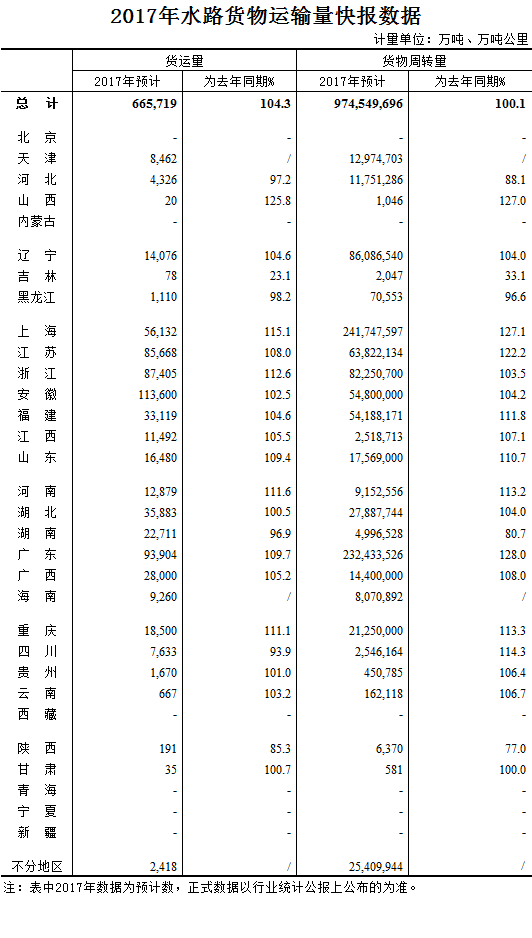 2017年水路貨物運(yùn)輸量快報(bào)數(shù)據(jù)