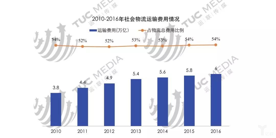 從2010年起社會物流運(yùn)輸費(fèi)用每年平均以53%的增長率快速上漲,2016年達(dá)到6萬億,這部分費(fèi)用可有效的向物流金融進(jìn)行轉(zhuǎn)化,物流金融市場存在巨大的潛力。