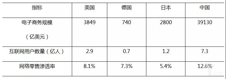 美德日中電子商務(wù)發(fā)展情況對比(2016)