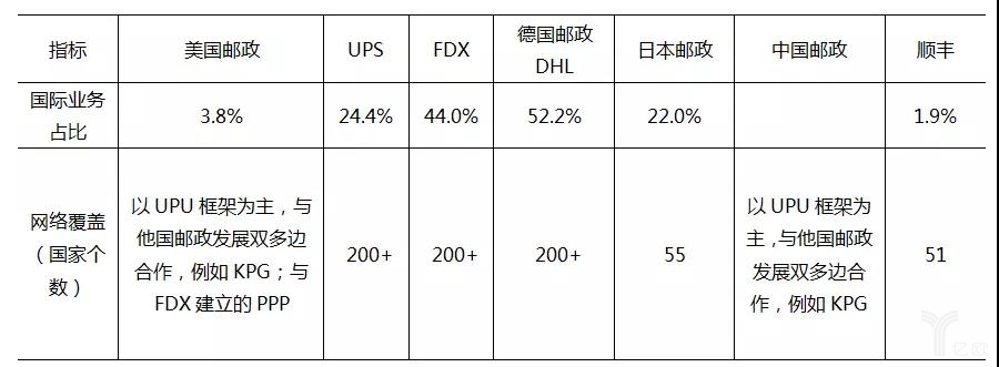 中美德日郵政業(yè)主要企業(yè)的國際業(yè)務(wù)及全球網(wǎng)絡(luò)覆蓋情況對比