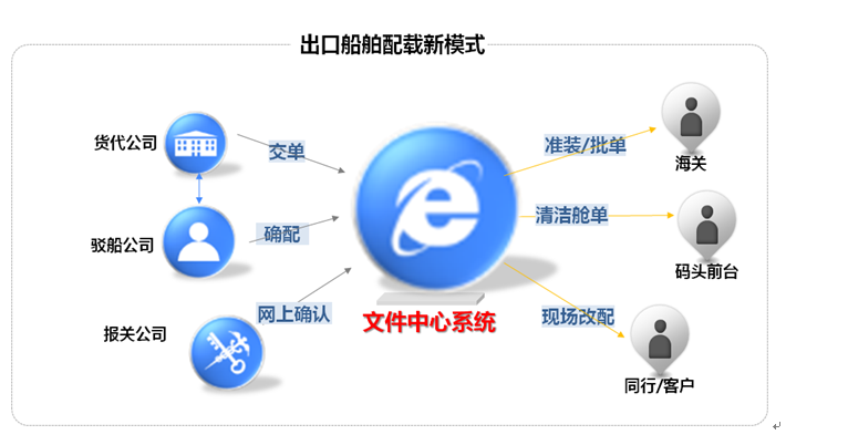 集裝箱進出口貨物相關(guān)數(shù)據(jù)由報關(guān)公司、碼頭、船公司等相關(guān)方在各自系統(tǒng)錄入,數(shù)據(jù)對碰一致才能正常配船出口或卸船。對整個行業(yè)而言,不僅重復勞動多,而且差錯率高,一旦一方數(shù)據(jù)出錯,則會影響貨物清關(guān)等。