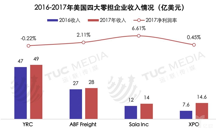 除FedEx外,其他大零擔企業(如YRC、ABF、Saia、XPO)近幾年收入處于持續增長階段,市場規模逐步擴大,自身實力不斷加強。
