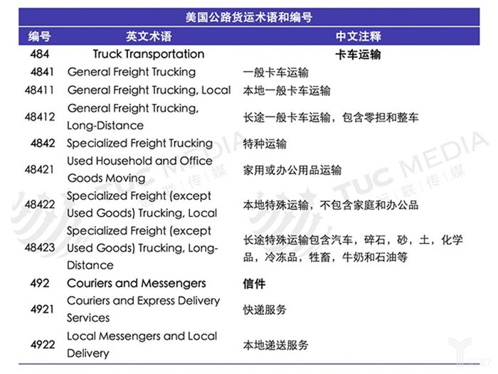 ATA僅對美國公路貨運中的卡車零擔運輸(LTL)與快遞和整車運輸(TL)規模進行簡單區分預測,快遞和整車運輸的規模大大超過卡車零擔運輸規模,其覆蓋范圍廣,不僅僅包含一般整車運輸,未進行物流行業細分市場規模的預測。