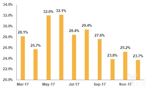 注:為表示趨勢,表格中剔除了17年1、2月份受春節假期擾動較大的數字。