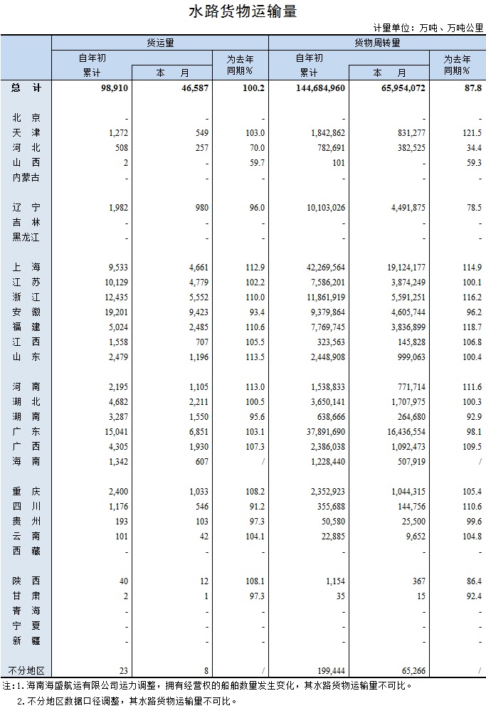 2018年2月水路貨物運輸量