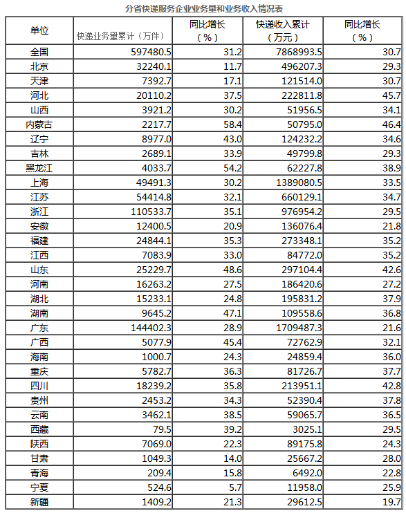 注:郵政行業(yè)業(yè)務(wù)收入中未包括郵政儲蓄銀行直接營業(yè)收入。