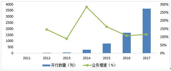 圖6 中歐班列開行整體情況統(tǒng)計(2011-2017年)
