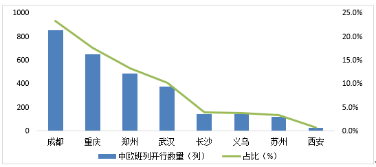 圖8 主要城市中歐班列開行統(tǒng)計(2017年)