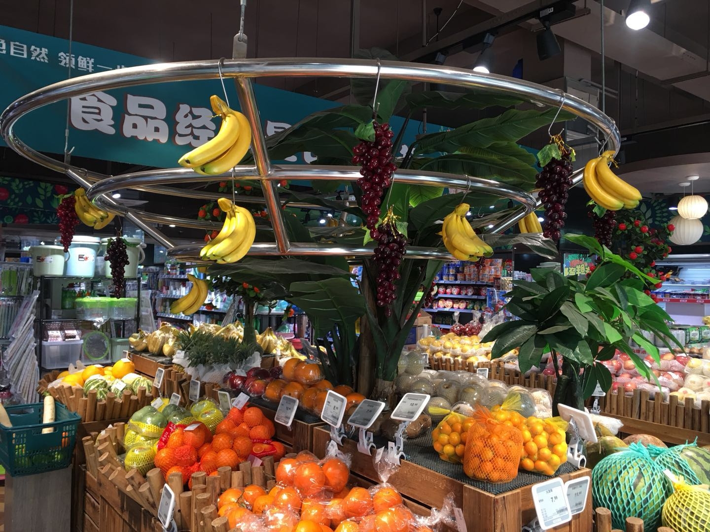 京捷生鮮使用了生鮮的點狀設計布局,從入口的水果區向超市內部走,分別經過雜糧、豆制品、半成品、肉、蔬菜、以及主食廚房區。生鮮等高頻次購買的食材,均勻以點狀布局帶面,形成有效分流。其次,出口和入口設計在不同的位置,也利用引流。在陳列上,據安徽眼界介紹,水果陳列道具借鑒于美國全食超市、蔬菜道具設計借鑒于農貿市場;零食架設地借鑒于樂大嘴等品牌,實現京捷生鮮店融合創新。
