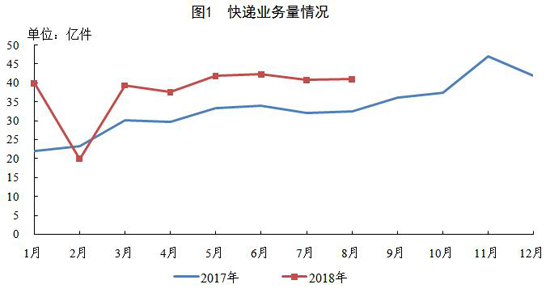8月,全國快遞服務(wù)企業(yè)業(yè)務(wù)量完成41億件,同比增長(zhǎng)25.7%;業(yè)務(wù)收入完成488.6億元,同比增長(zhǎng)20.9%。