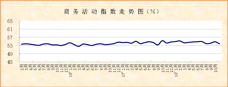 中國(guó)物流與采購(gòu)聯(lián)合會(huì)、國(guó)家統(tǒng)計(jì)局服務(wù)業(yè)調(diào)查中心發(fā)布的2018年10月份中國(guó)非制造業(yè)商務(wù)活動(dòng)指數(shù)為53.9%,環(huán)比下降1個(gè)百分點(diǎn);新訂單指數(shù)50.1%,環(huán)比回落0.9個(gè)百分點(diǎn)。指數(shù)變化顯示,本月非制造業(yè)市場(chǎng)供需增速有所放緩。從指數(shù)水平看,市場(chǎng)經(jīng)營(yíng)保持較快增長(zhǎng),需求保持?jǐn)U張,非制造業(yè)仍具備持續(xù)較快發(fā)展的基礎(chǔ)。