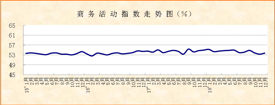 中國物流與采購聯(lián)合會(huì)、國家統(tǒng)計(jì)局服務(wù)業(yè)調(diào)查中心發(fā)布的2018年12月份中國非制造業(yè)商務(wù)活動(dòng)指數(shù)達(dá)到53.8%,較上月上升0.4個(gè)百分點(diǎn),表明非制造業(yè)經(jīng)營活動(dòng)較上月有所加快。2018年1-12月,商務(wù)活動(dòng)指數(shù)均值為54.4%,較2017年小幅回落0.2個(gè)百分點(diǎn),表明非制造業(yè)整體保持較快發(fā)展,為我國經(jīng)濟(jì)保持高質(zhì)量發(fā)展奠定了較好的基礎(chǔ)。