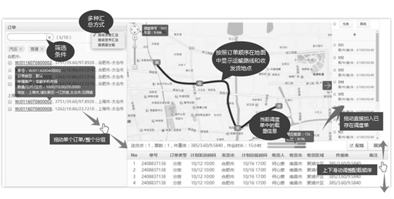 在承運商的調度配載中,可展開多個調度單,形成工作臺,無需來回切換,操作友好;同時可整合訂單,幫助調度參考;實現可視化,直接在地圖上規范路線和載重,降低人工依賴性。