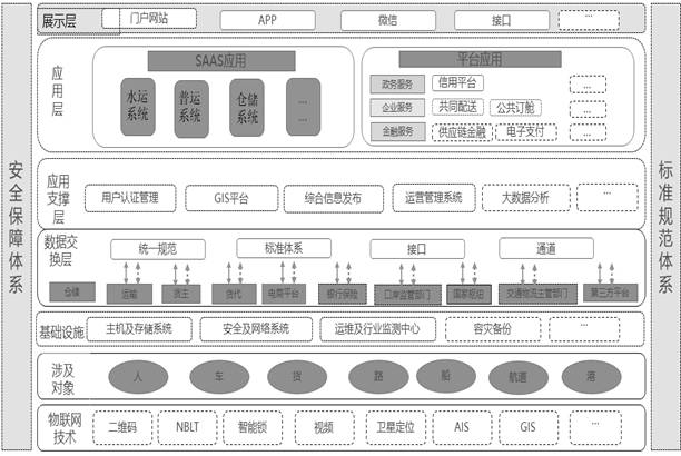 平臺整體技術架構分物聯網技術層、物流要素對象層、基礎設施層、數據交換層、應用支撐層、應用層、展現層。具體如下圖所示: