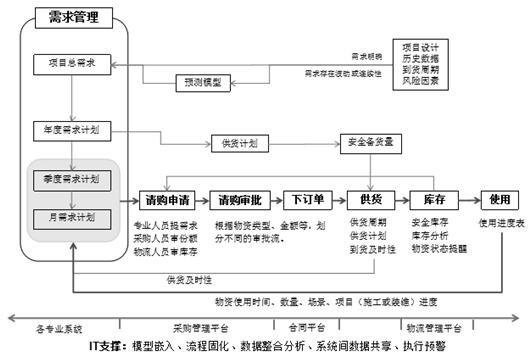 根據信息來源的不同,物流需整合集中的信息主體可分為內、外兩種,即供應商、代維單位、施工單位、營銷單位四個外部信息主體和需求部門、采購部門、物流部門和使用部門四個內部信息主體(需求部門也可能是使用部門)。而物流作為一個貫穿始終的主線,涉及需求征集、下單采購、供應商到貨、實物入庫、倉儲、出庫、使用7個主要環節,河北移動基于數據分析和管理流程搭建全省可用的物流專業管理平臺,1)各主體、各環節信息高度一致;2)物資全生命周期在線監控;3)倉儲資源隨時查看;4)運輸狀態實時監控;5)分析表自動生成。各方信息得到整合,在管理流程標準化、信息化的同時,增強數據整合、數據分析,使整個物流運營工作更加井然有序。