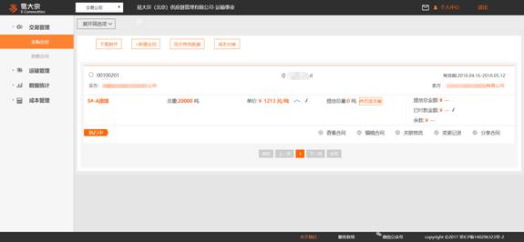 在交易公司的系統功能范疇內可以進行交易管理、合同管理、運輸管理、成本管理及數據統計。這幾個管理功能可以幫助交易型公司免除較多的線下煩惱,通過在線下單、在線選擇交易對手或服務方即可完成本次交易。在易焦煤后臺可以實時監控貨物狀態,也可以對相關動態的節點進行管控。