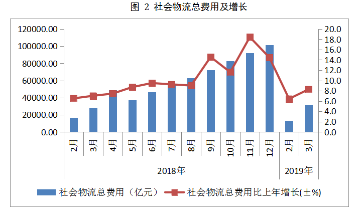 2019年一季度物流運(yùn)行總體平穩(wěn),社會(huì)物流總額平穩(wěn)增長,物流市場(chǎng)規(guī)模穩(wěn)步擴(kuò)張,社會(huì)物流總費(fèi)用增速比去年全年有所回落。