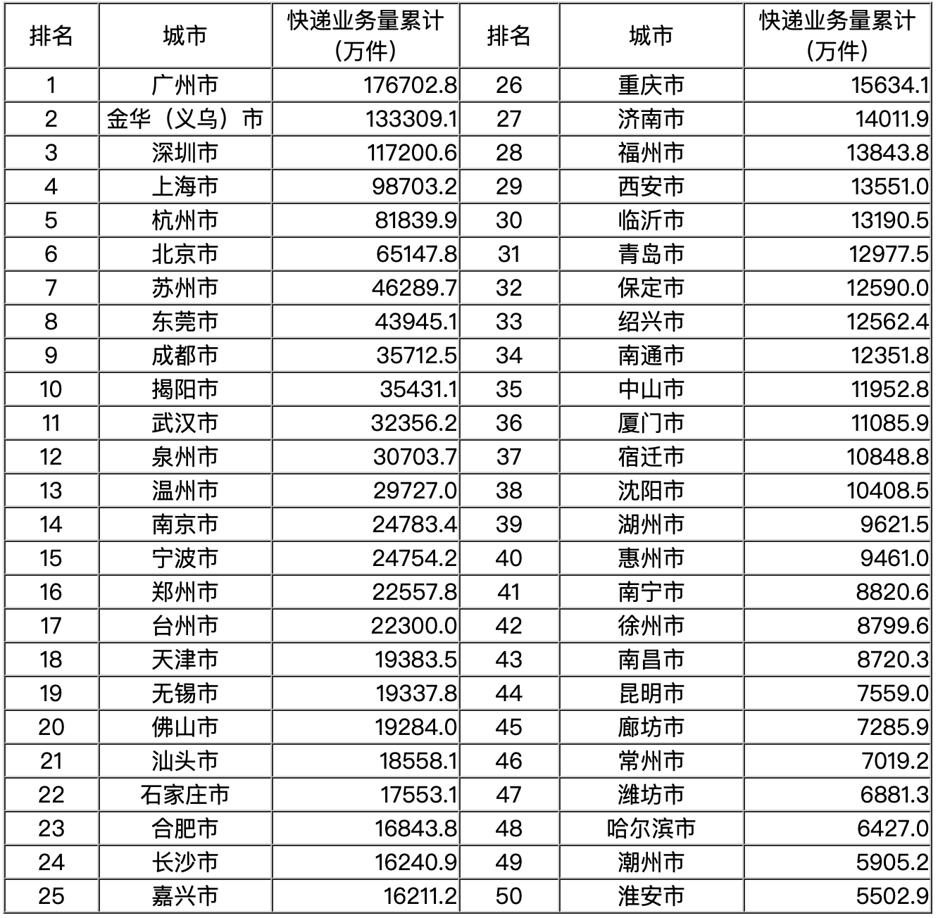 4月份,全國快遞服務企業業務量完成49.2億件,同比增長31.1%;業務收入完成592.5億元,同比增長26.8%。