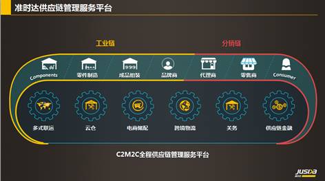 準(zhǔn)時(shí)達(dá)(JUSDA),富士康科技集團(tuán)唯一授權(quán)的供應(yīng)鏈管理企業(yè),全球C2M2C(Component to Manufacture to Consumer)專業(yè)供應(yīng)鏈管理平臺(tái)服務(wù)企業(yè),為客戶提供互聯(lián)網(wǎng)時(shí)代下從原材料端到消費(fèi)者端的供應(yīng)鏈實(shí)時(shí)協(xié)同平臺(tái)管理服務(wù)。準(zhǔn)時(shí)達(dá)是工業(yè)互聯(lián)網(wǎng)下新供應(yīng)鏈形態(tài)的最佳實(shí)踐者,協(xié)助B2B企業(yè)完成供應(yīng)鏈升級(jí)轉(zhuǎn)型及商業(yè)模式再造。